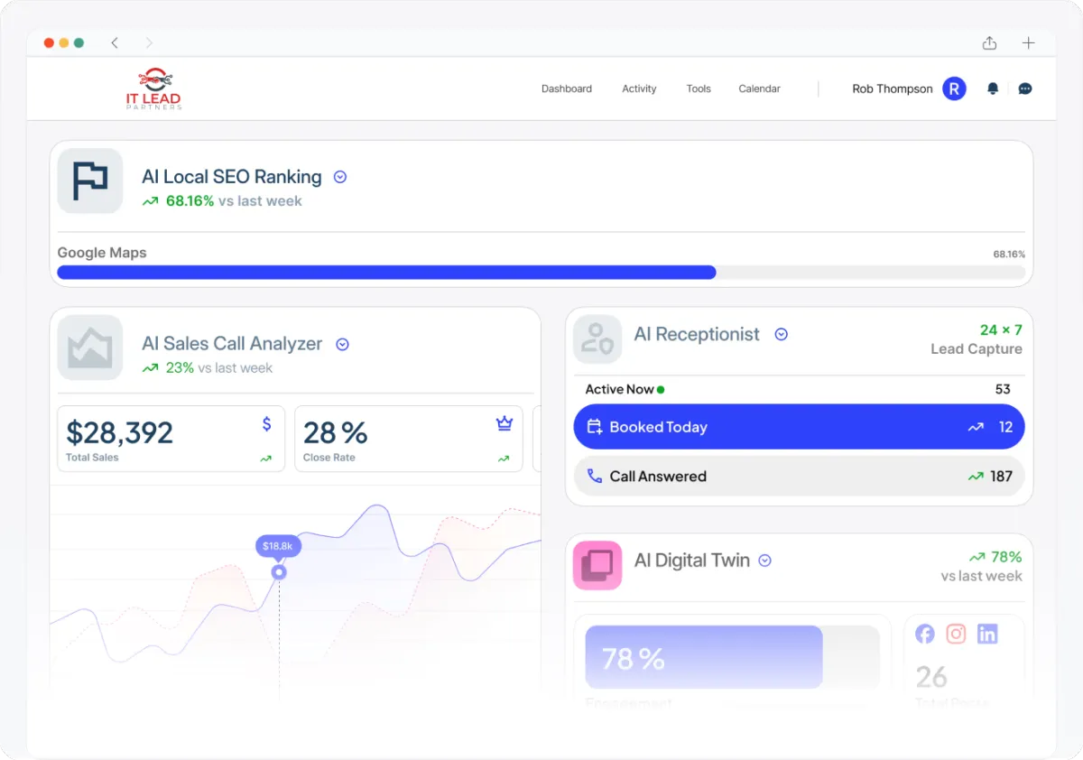 From getting found to closing the sale, our AI-powered solutions work together to help you dominate your local market.